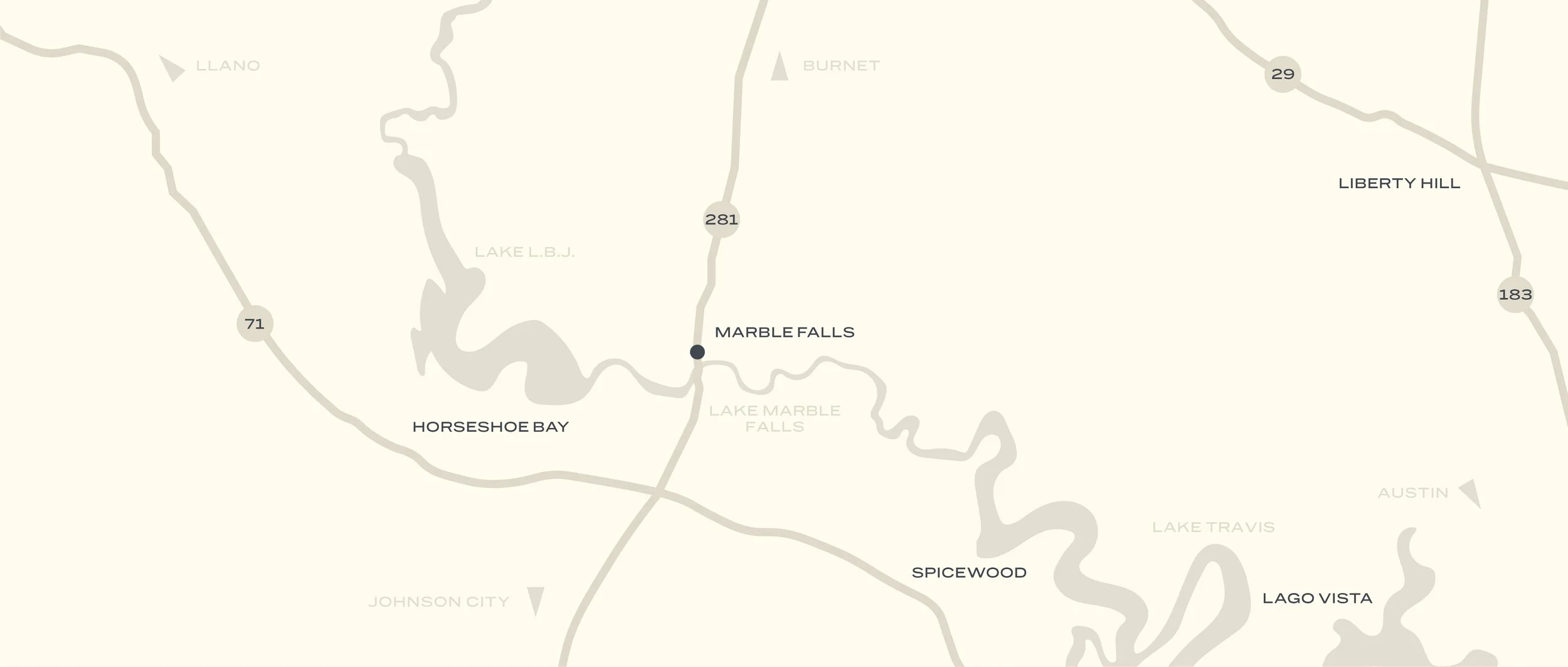 Marble Falls is a small town west of Austin in the Highland Lakes region of the Texas Hill Country.