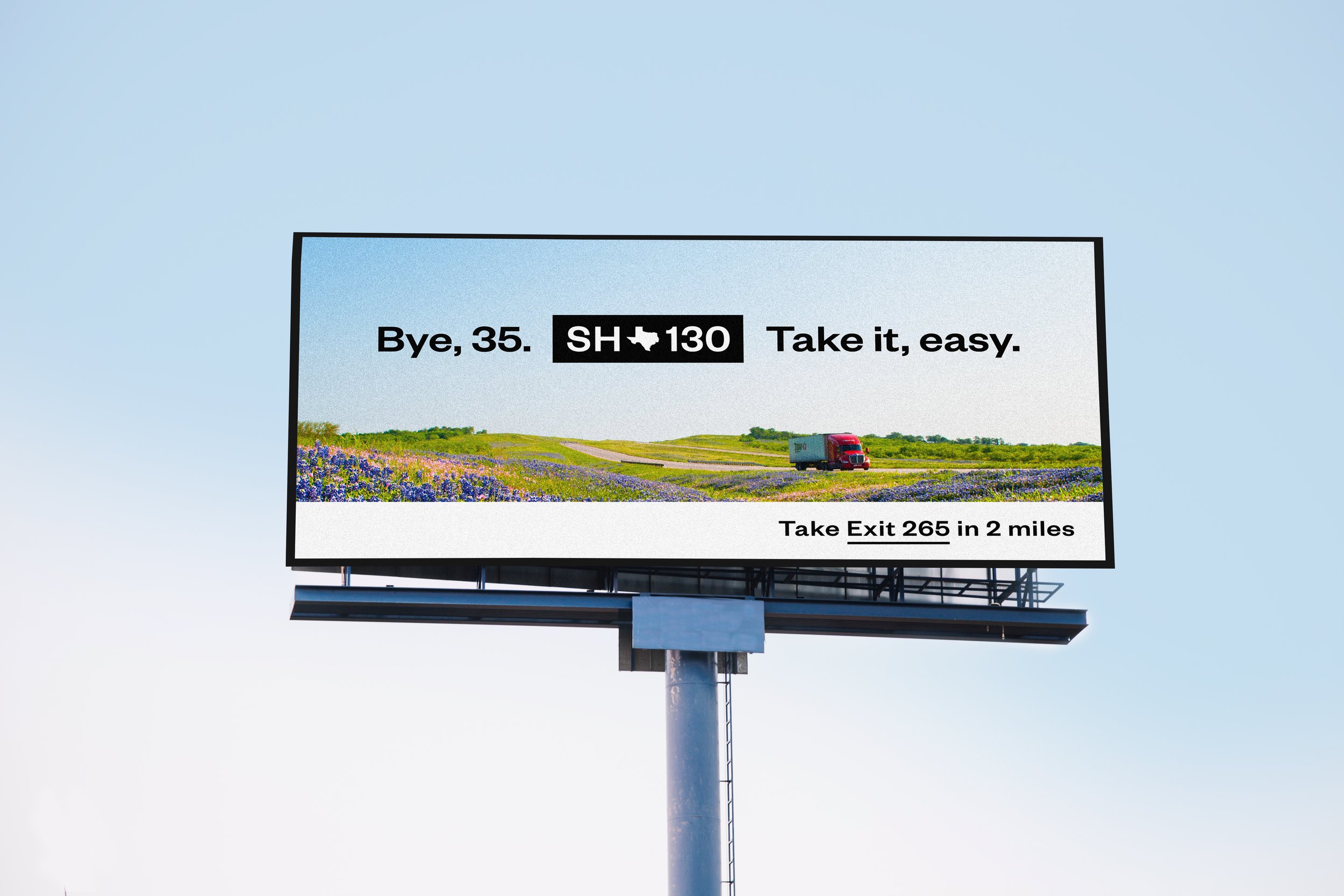 Campaign for State Highway 130, a wide-open belt road around Austin traffic. Copywriting and art direction as breezy as that 85 MPH speed limit.